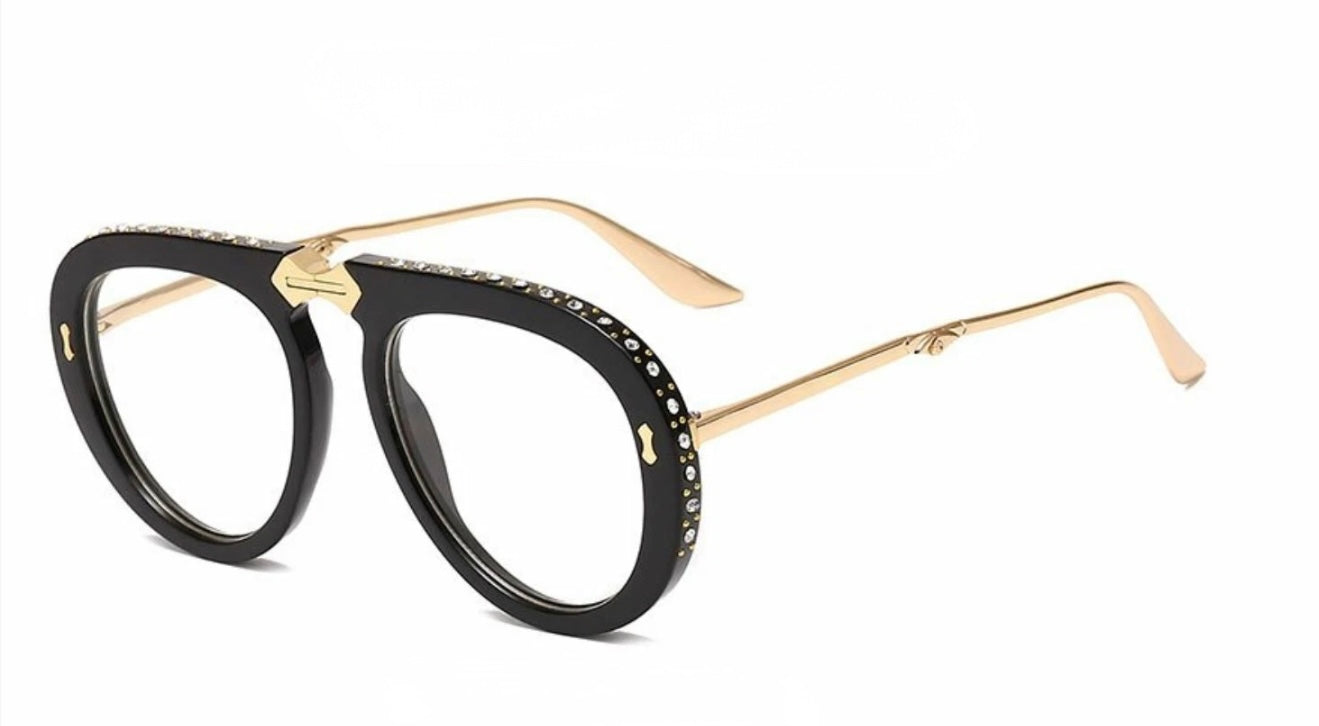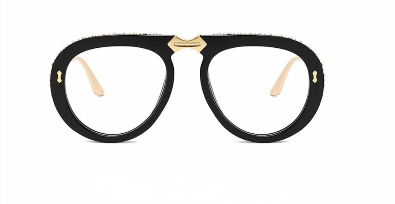 Stylish foldable aviator sunglasses featuring crystal-embellished frames for compact convenience and sparkling appeal.