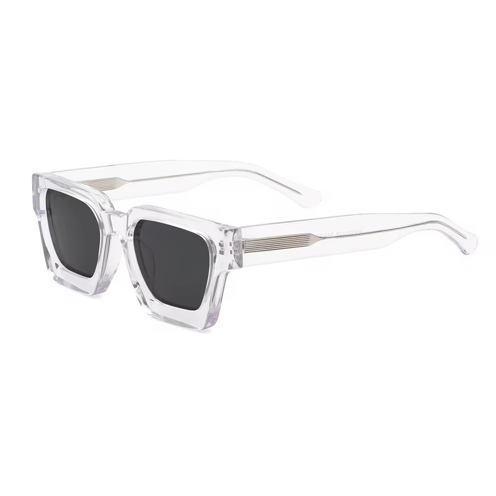 Boldly stand out with these square acetate sunglasses featuring a chunky, crystal-clear frame inspired by legendary designer styles.